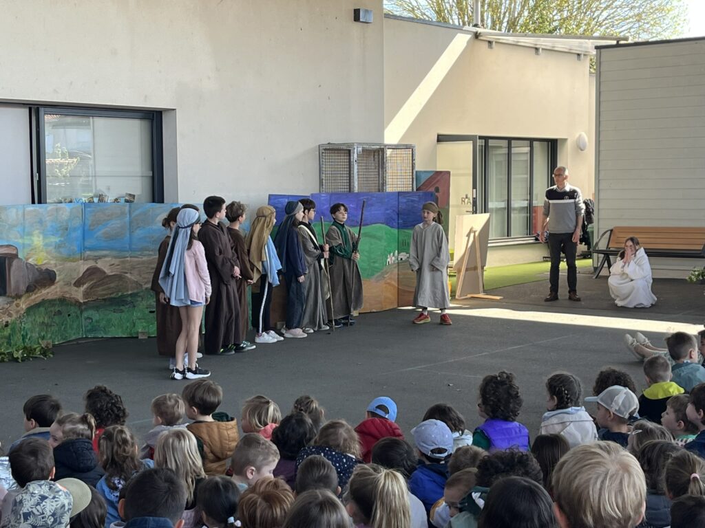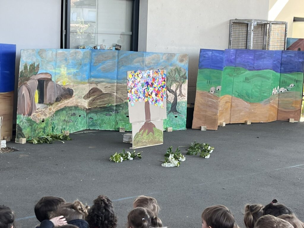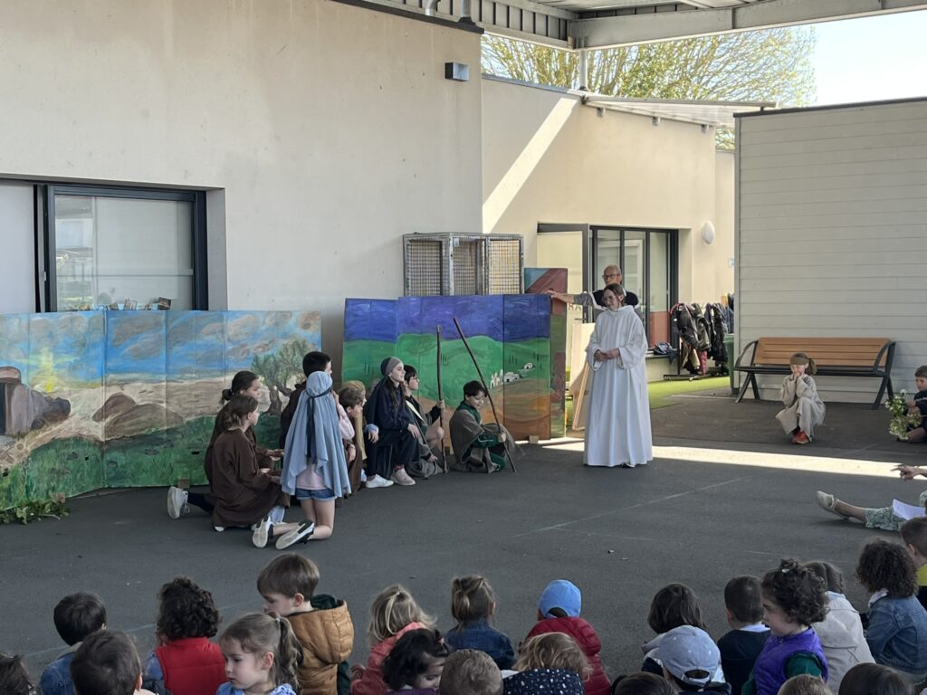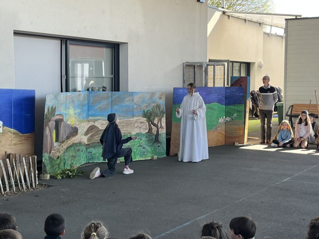 Mardi 7 avril, nous avons pris le temps de vivre ensemble le temps fort de Pâques au sein de notre école. Grâce à l’accompagnement précieux de nos catéchistes, ce moment a été préparé avec soin et attention. Nous avons mis en scène cet événement important afin de le rendre plus concret et accessible à tous. Petits et grands ont ainsi pu mieux comprendre le sens de cette fête. Ce fut un beau moment de partage, riche en émotions et en réflexion. Merci à nos bénévoles pour leur investissement et à nos élèves participants.