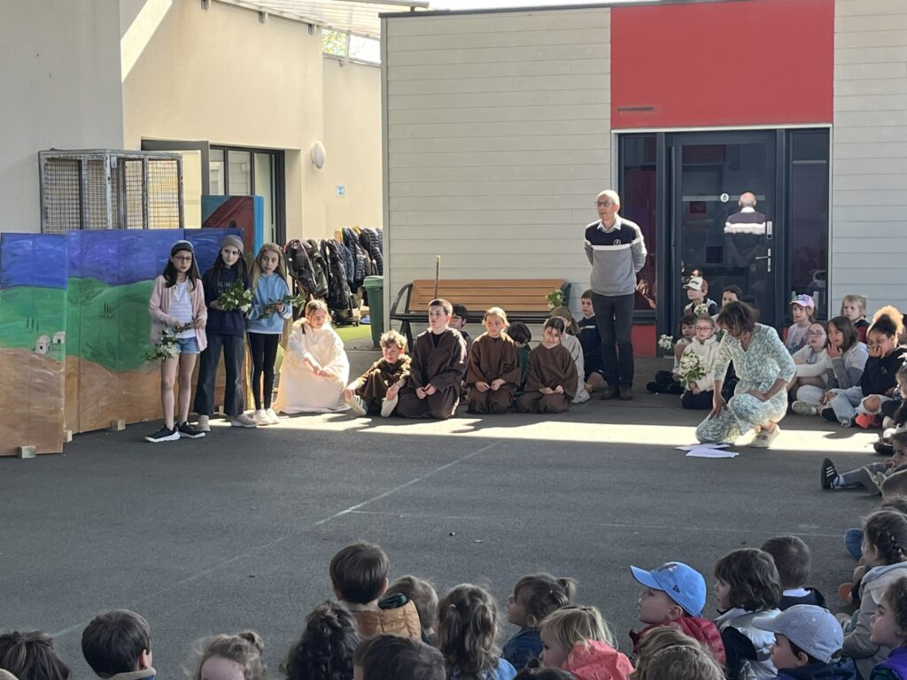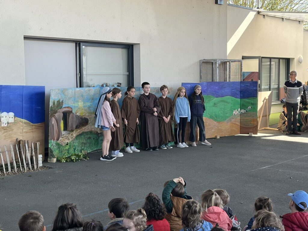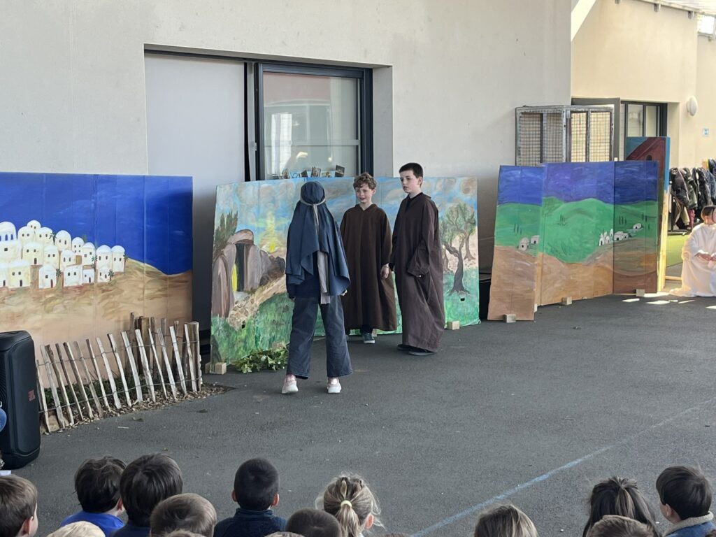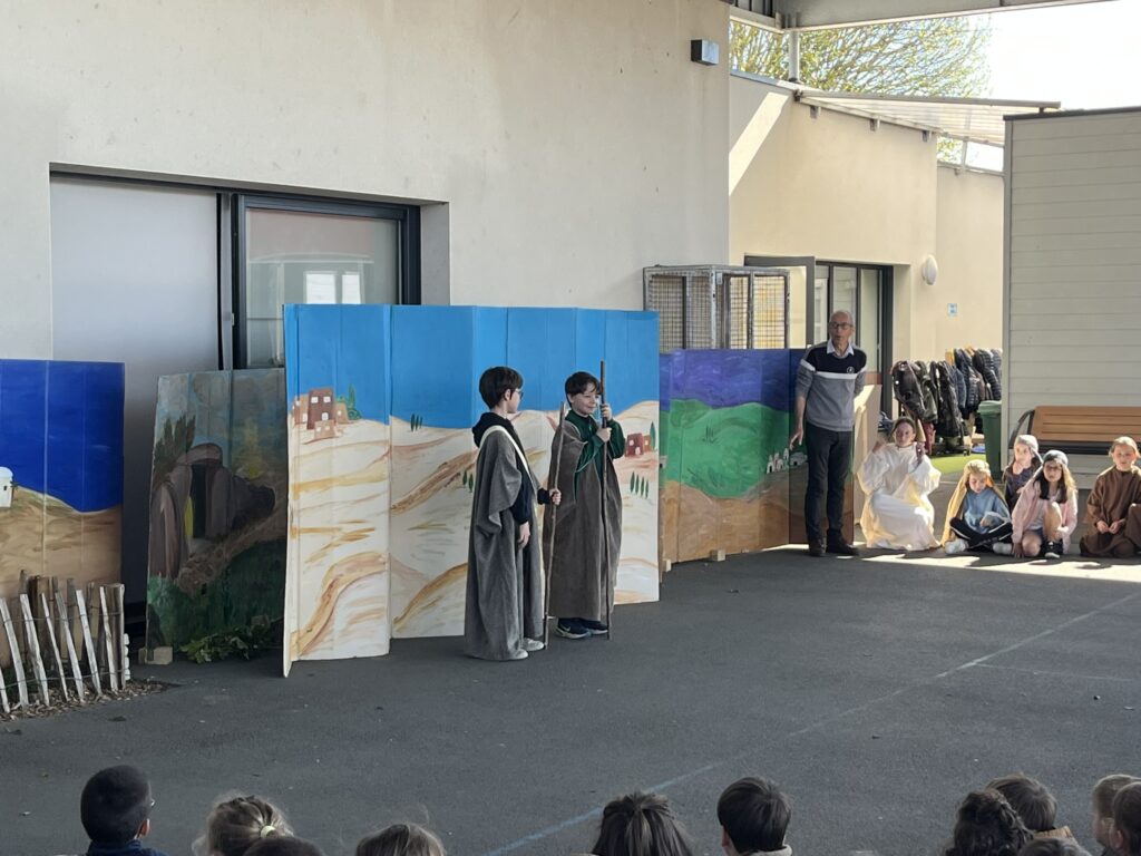Mardi 7 avril, nous avons pris le temps de vivre ensemble le temps fort de Pâques au sein de notre école. Grâce à l’accompagnement précieux de nos catéchistes, ce moment a été préparé avec soin et attention. Nous avons mis en scène cet événement important afin de le rendre plus concret et accessible à tous. Petits et grands ont ainsi pu mieux comprendre le sens de cette fête. Ce fut un beau moment de partage, riche en émotions et en réflexion. Merci à nos bénévoles pour leur investissement et à nos élèves participants.