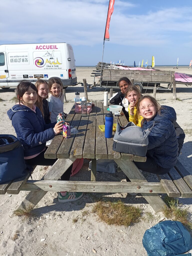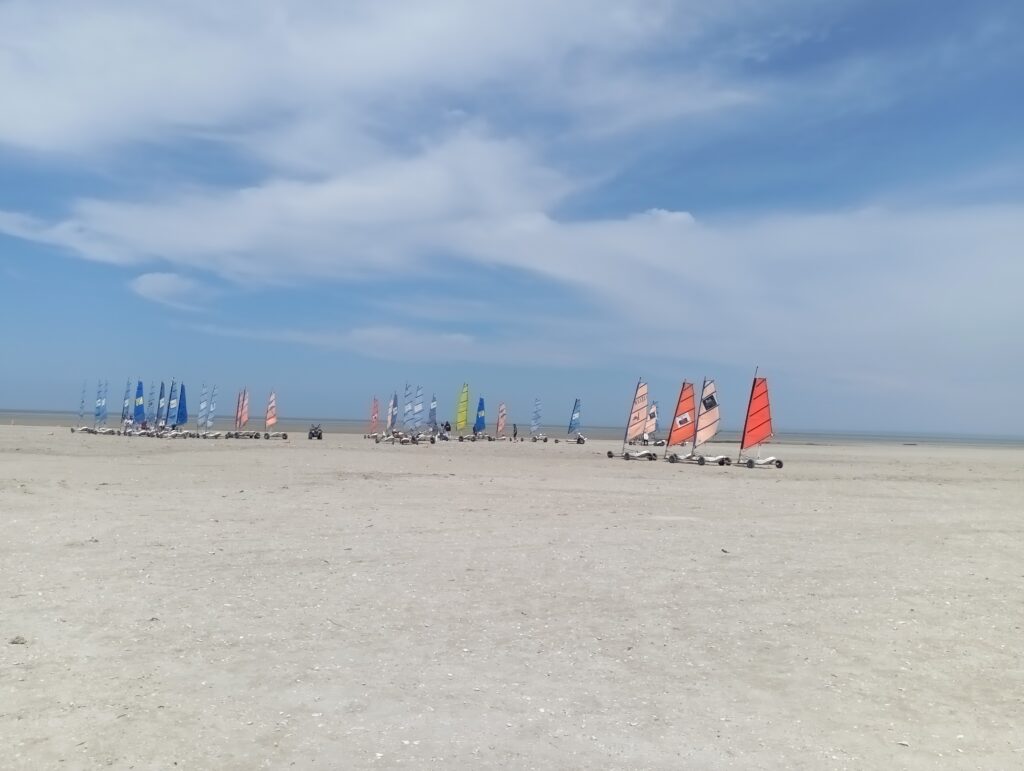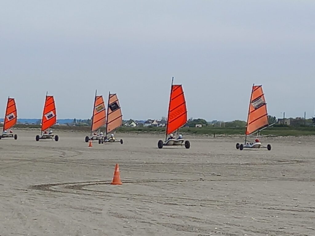 D’autres ont commencé l’initiation au char à voile pendant près de deux bonnes heures. Puis nous avons inversé les rôles. Tous se sont régalés sous un beau soleil avec juste ce qu’il fallait de vent pour manier les chars sur un parcours organisé par le club.