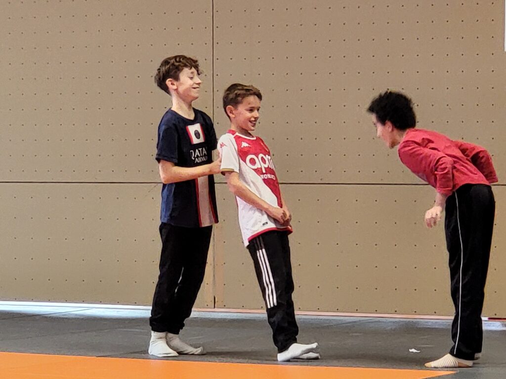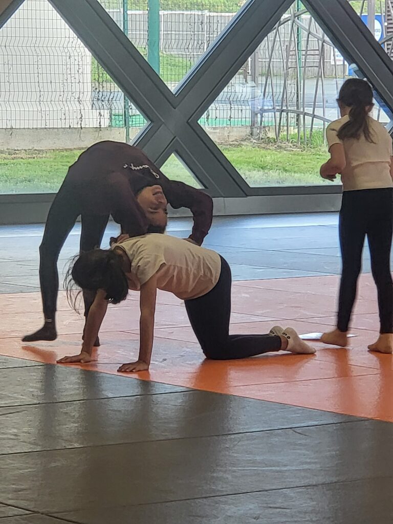 L’objectif des premières séances est de voir comment nous pouvons travailler ensemble pour réaliser des figures acrobatiques possibles en assurant un rôle précis pour chacun et chacune.