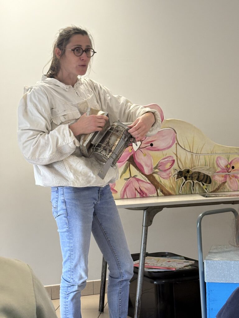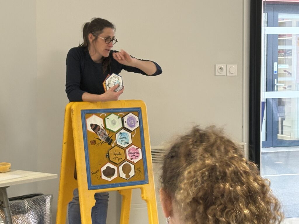 Jeudi, la classe des CM1 et CM2, a découvert la vie passionnante des abeilles avec Vanessa de l’Usine piquante. Comprendre la vie des abeilles, leur rôle essentiel pour la pollinisation et identifier la place de chaque individu dans cette société si bien organisée mais aussi leurs prédateurs ou leurs parasites étaient autant de sujets passionnants. Nous avons eu la chance de les voir en action car Vanessa avait apporté un rucher et nous avons relevé le défi pour chercher et trouver la reine!