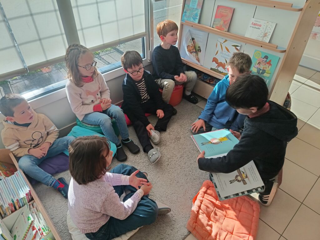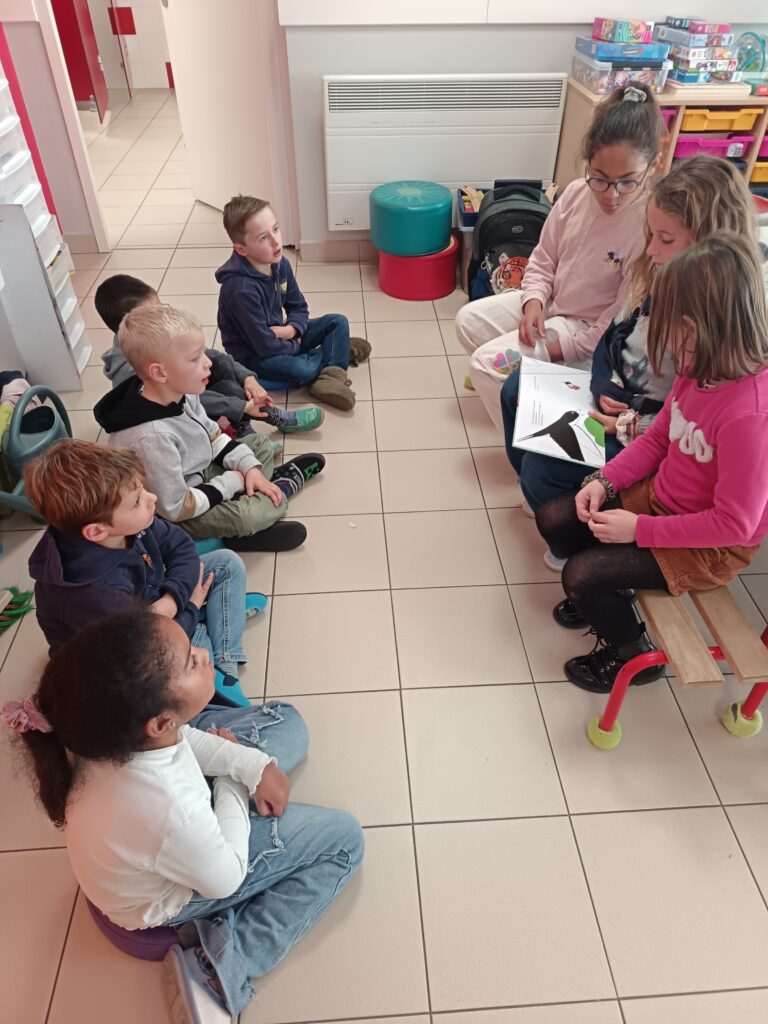 A l’occasion de la semaine du livre organisée à l’école, les élèves de CE2 de la classe de Yannick sont venus dans notre classe pour lire des histoires. C’était l’occasion de partager un bon moment autour de la lecture.