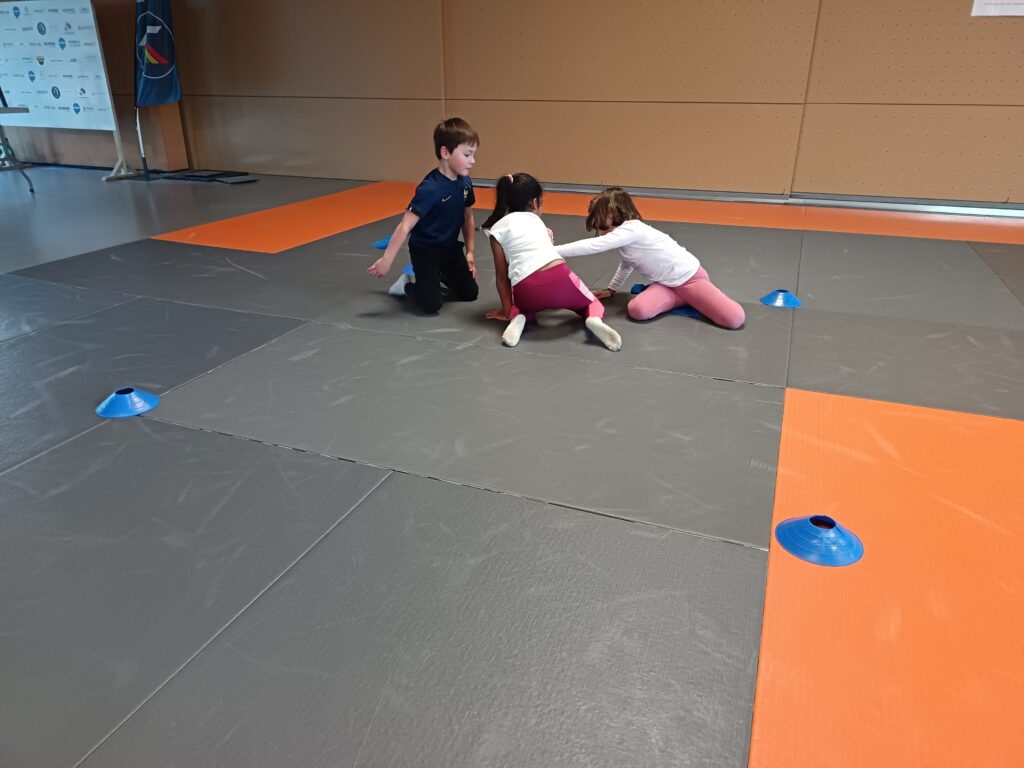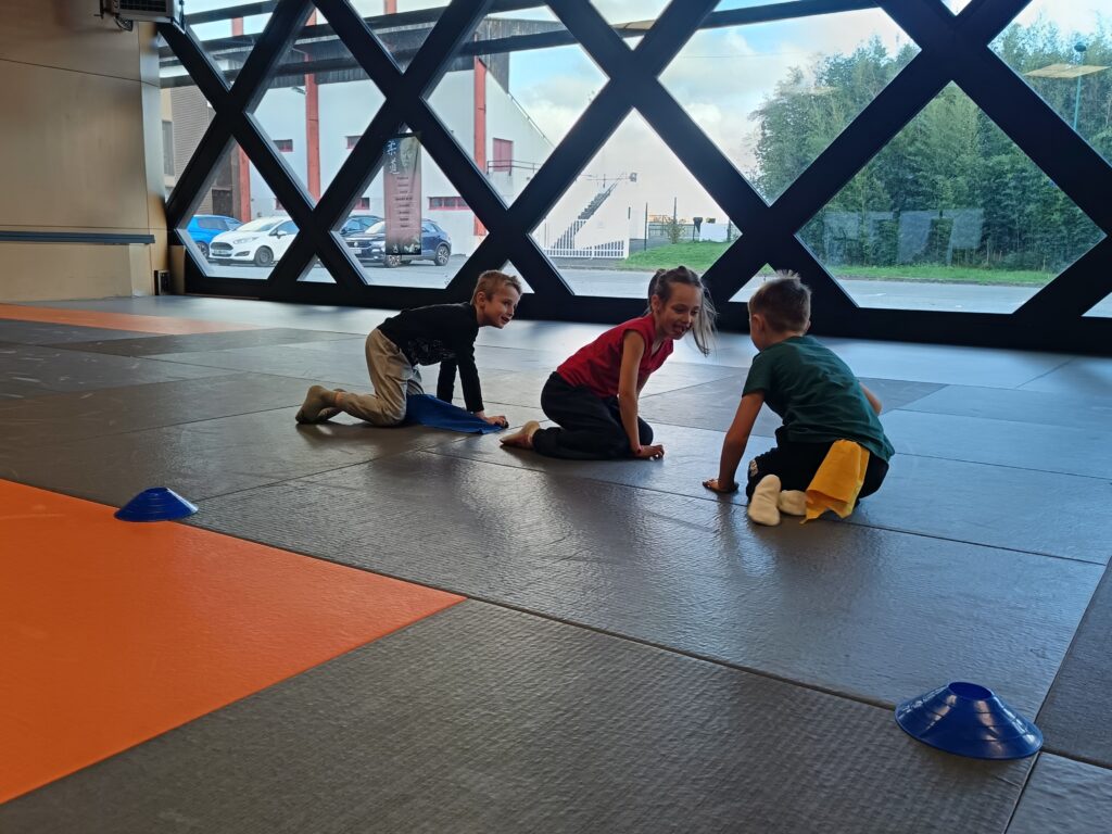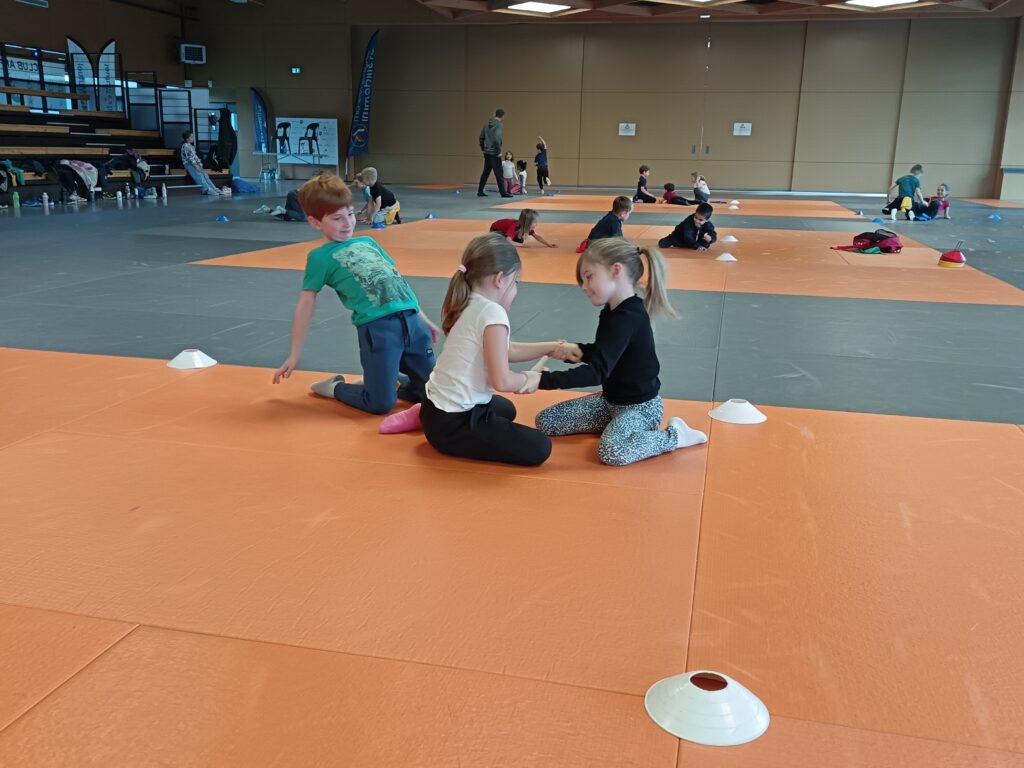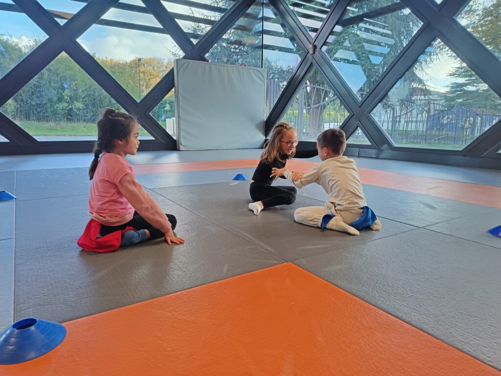 Pour cette seconde période de sport, nous allons au dojo de Massabielle pour pratiquer les jeux d’opposition. Nous faisons de petits combats dans lesquels il faut faire chuter son adversaire ou lui prendre des pinces accrochées à ses vêtements.