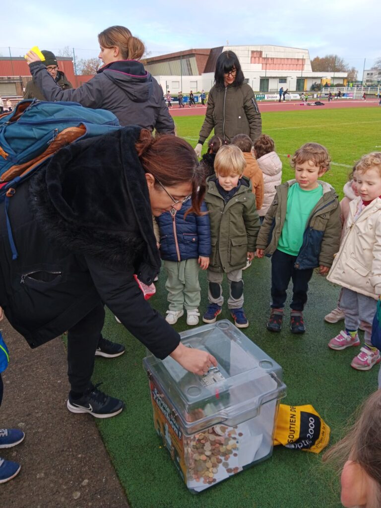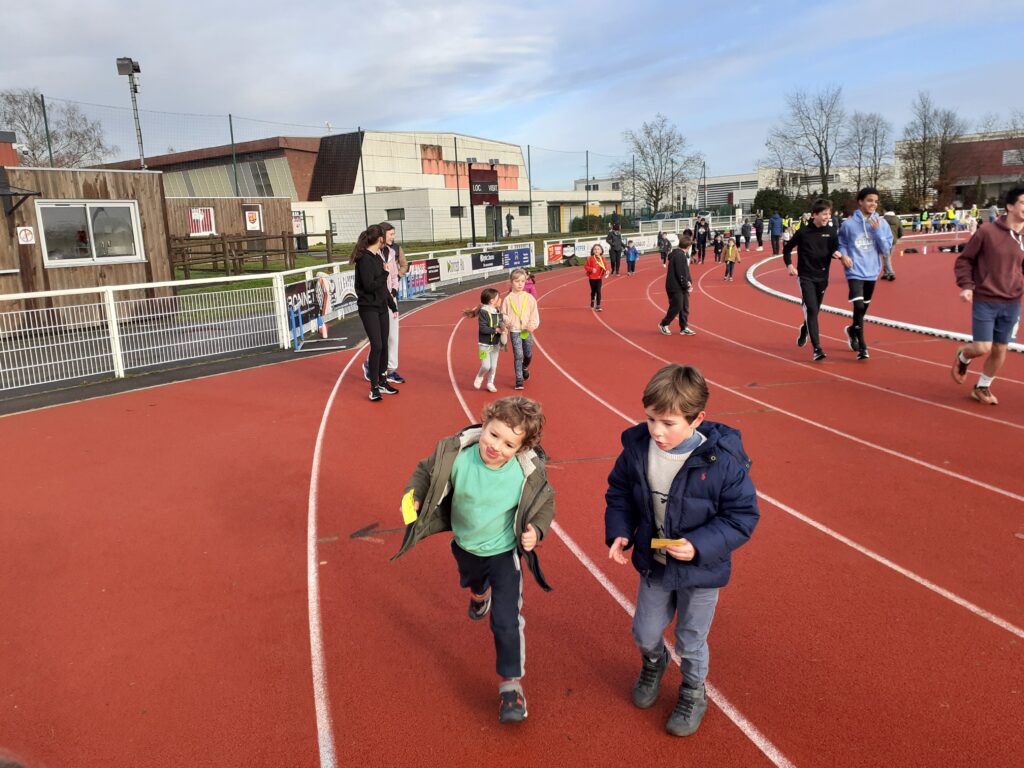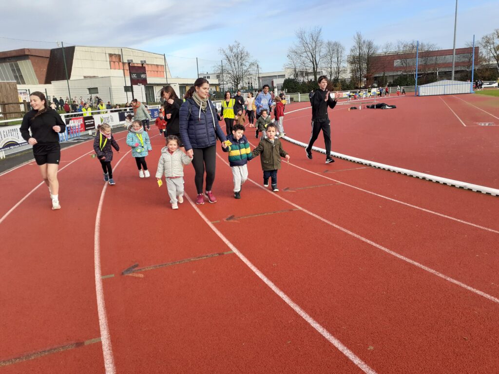 Le vendredi 5 décembre, nous sommes allés en car au stade de la Demoiselle. Nous avons fait plusieurs tours de piste en courant ou en marchant pour le Téléthon.