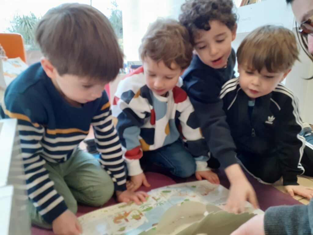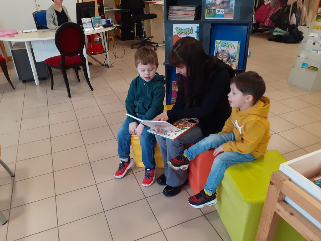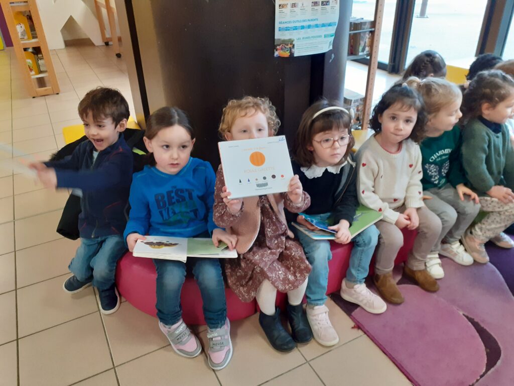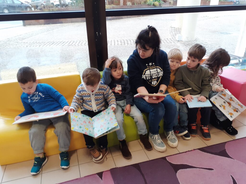 Le jeudi 5 février, nous sommes allés à la bibliothèque des Herbiers. Des mamans nous ont accompagné pour nous lire des histoires. Elles nous ont aussi aidé à choisir des livres pour que les grands de la classe de CM1-CM2 puissent nous les lire le mardi suivant.