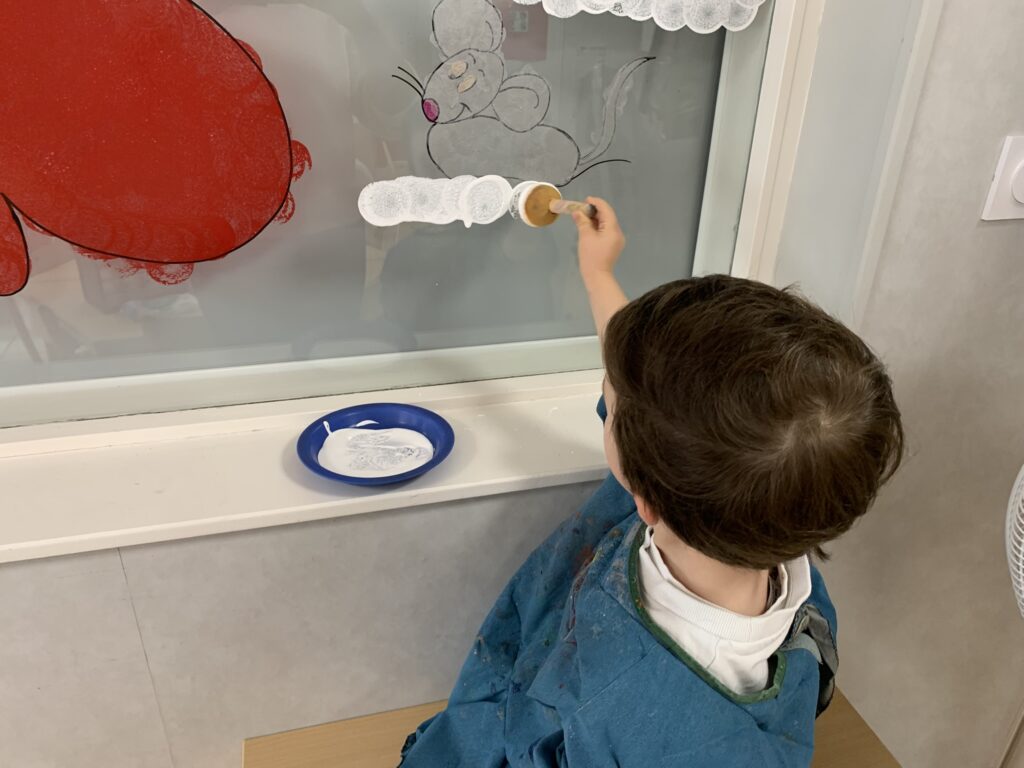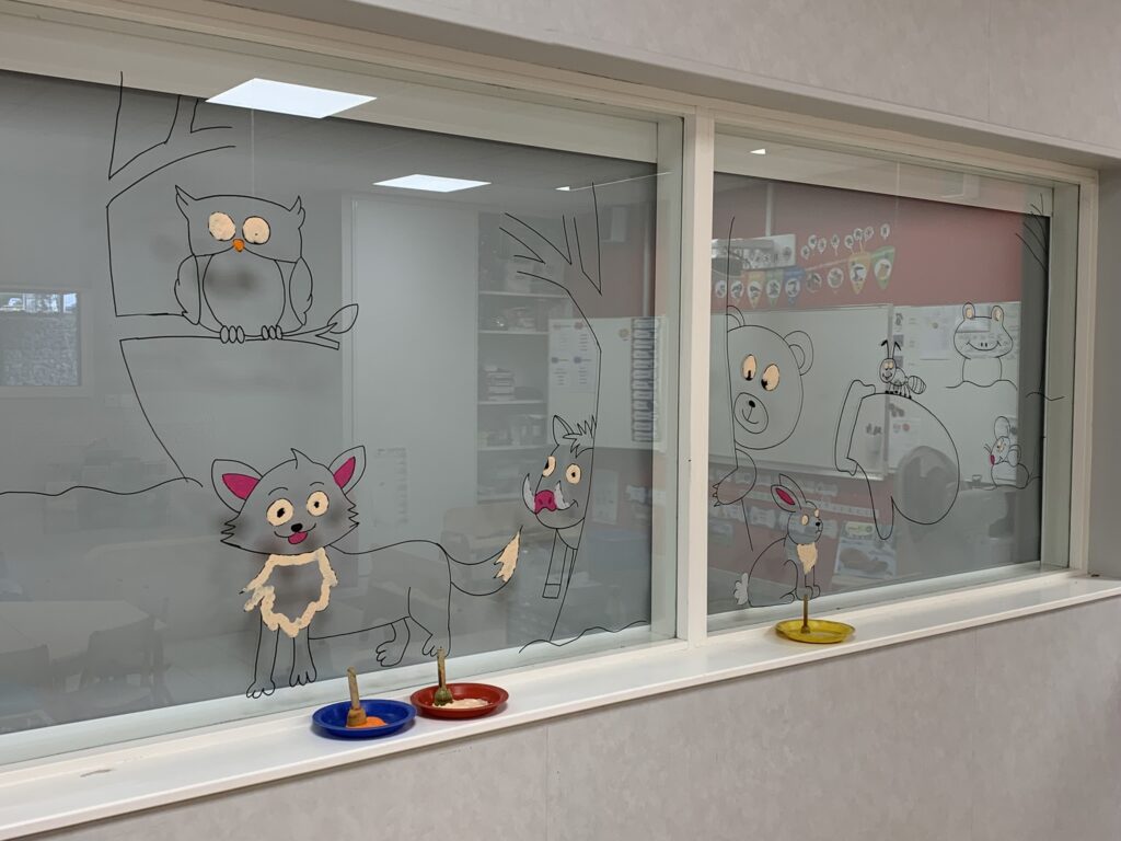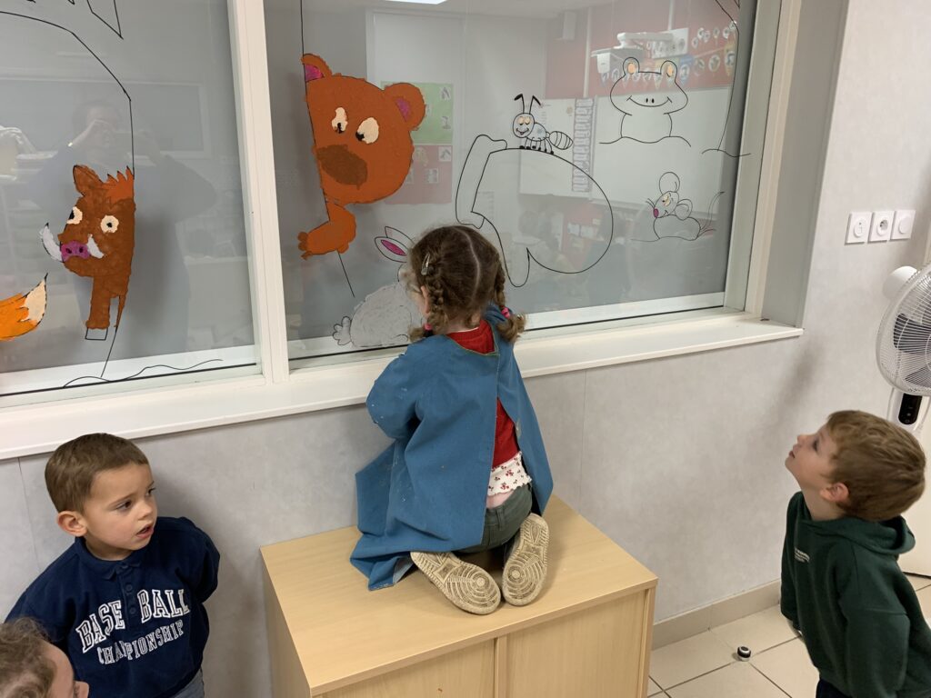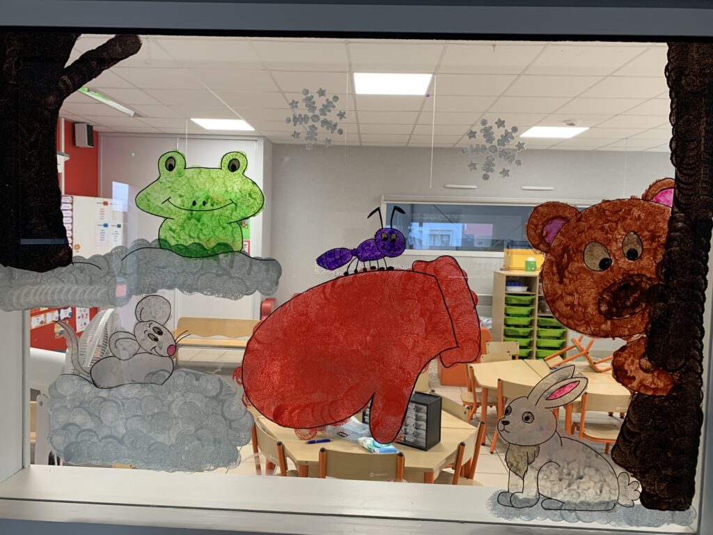 Nous avons tellement aimé ce livre, que nous décorons les vitres (entre la classe et la salle de sieste) en lien avec cette histoire !