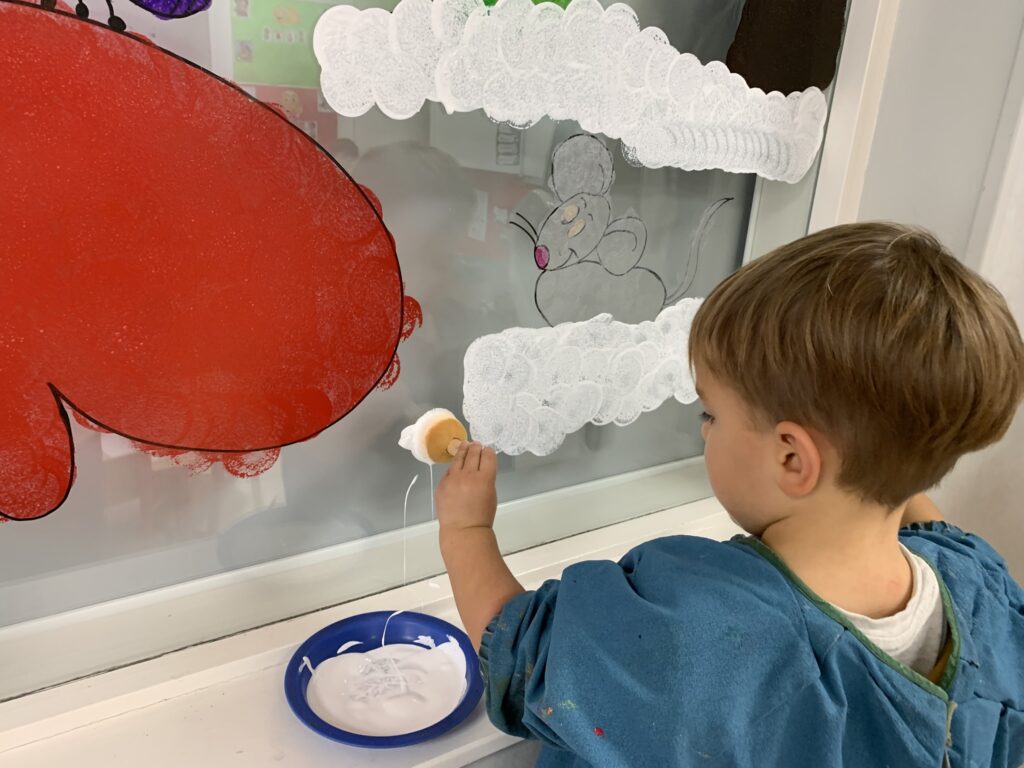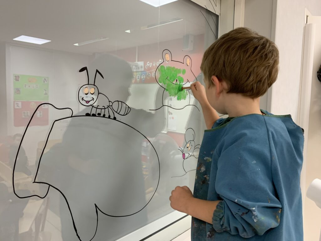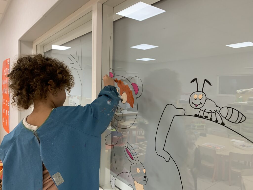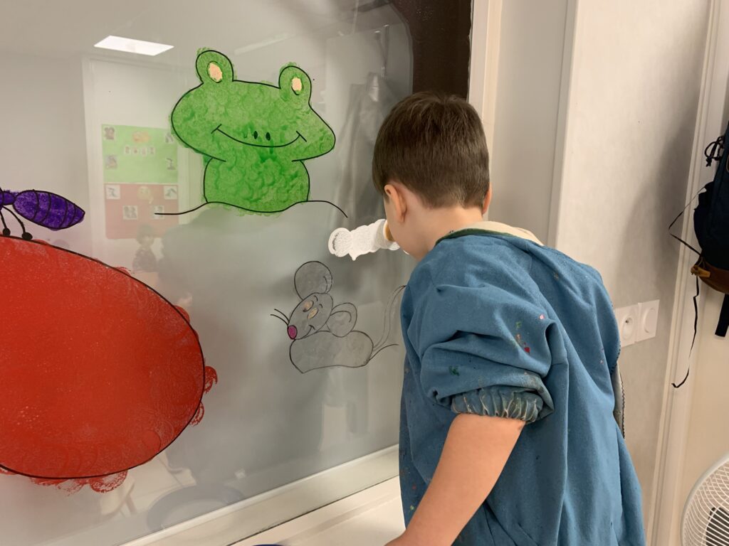 Nous avons tellement aimé ce livre, que nous décorons les vitres (entre la classe et la salle de sieste) en lien avec cette histoire !