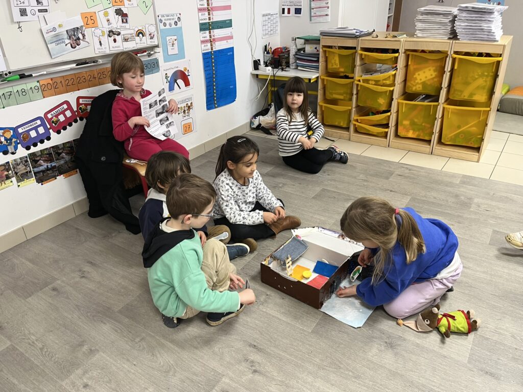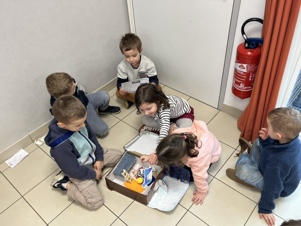 Ils avaient fabriqué une boite à histoire, qui représente la maison de Petite Taupe, ainsi que tous les animaux présents dans le livre.