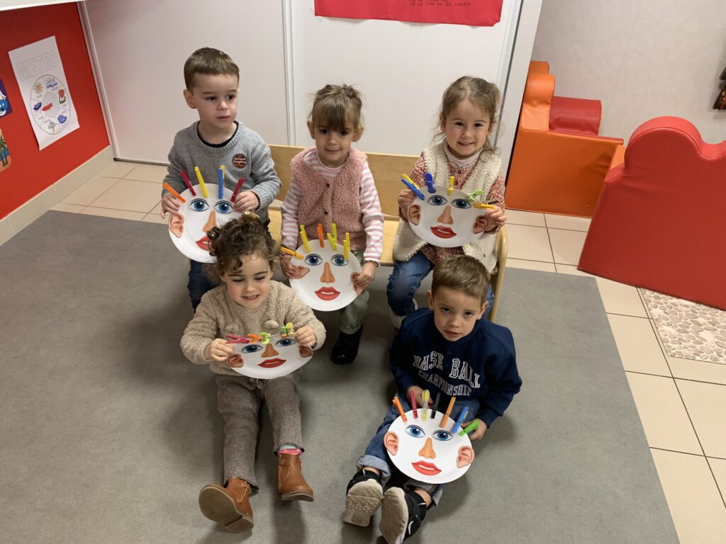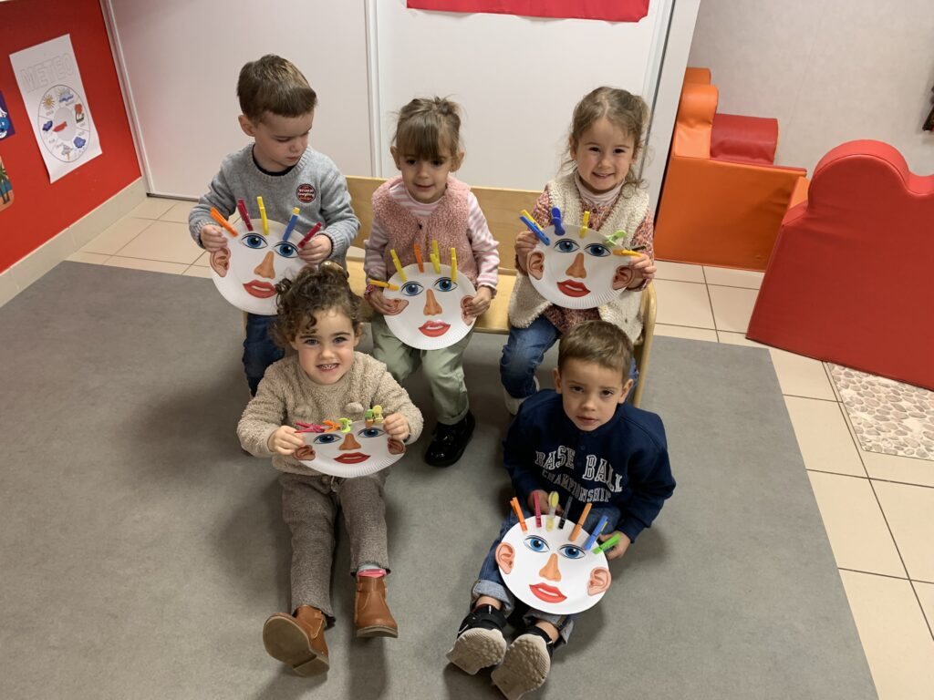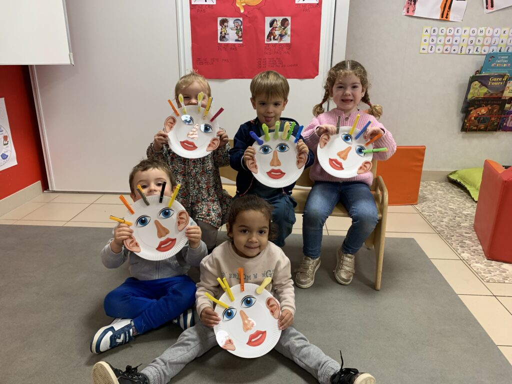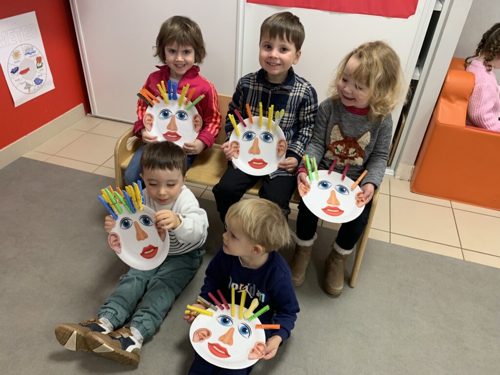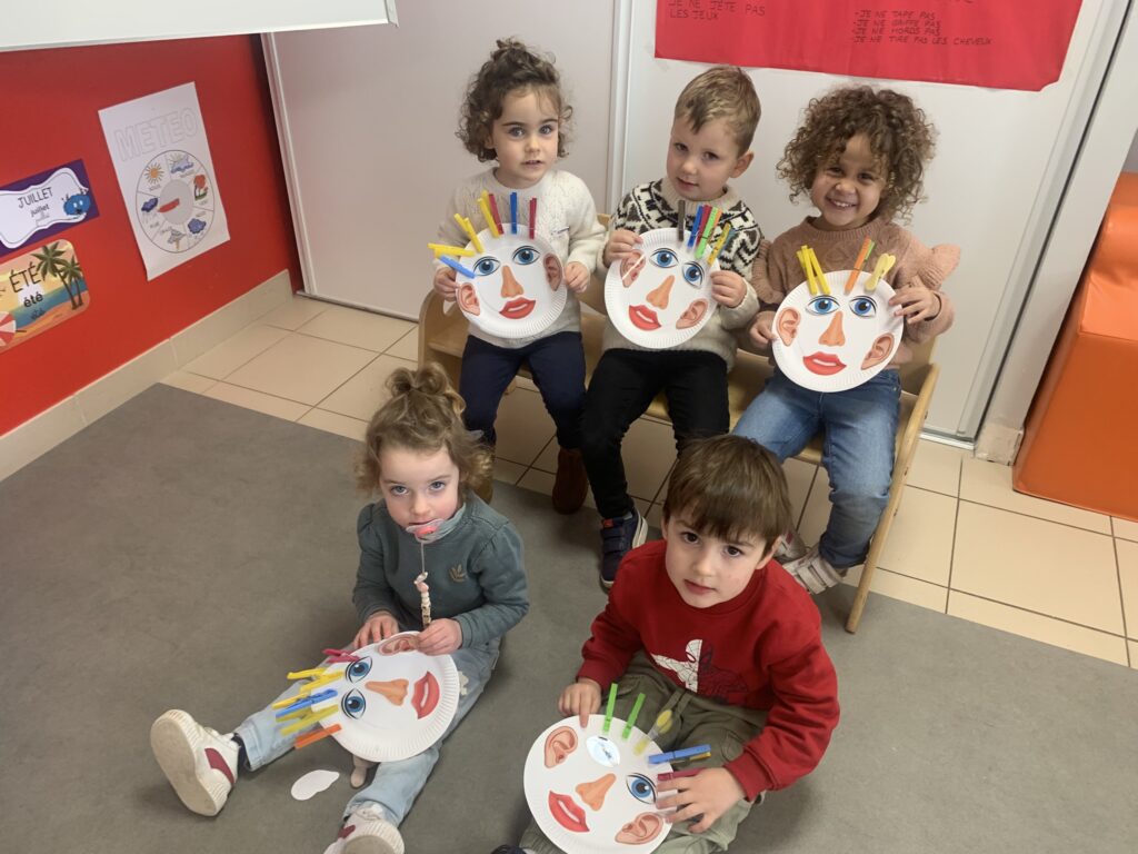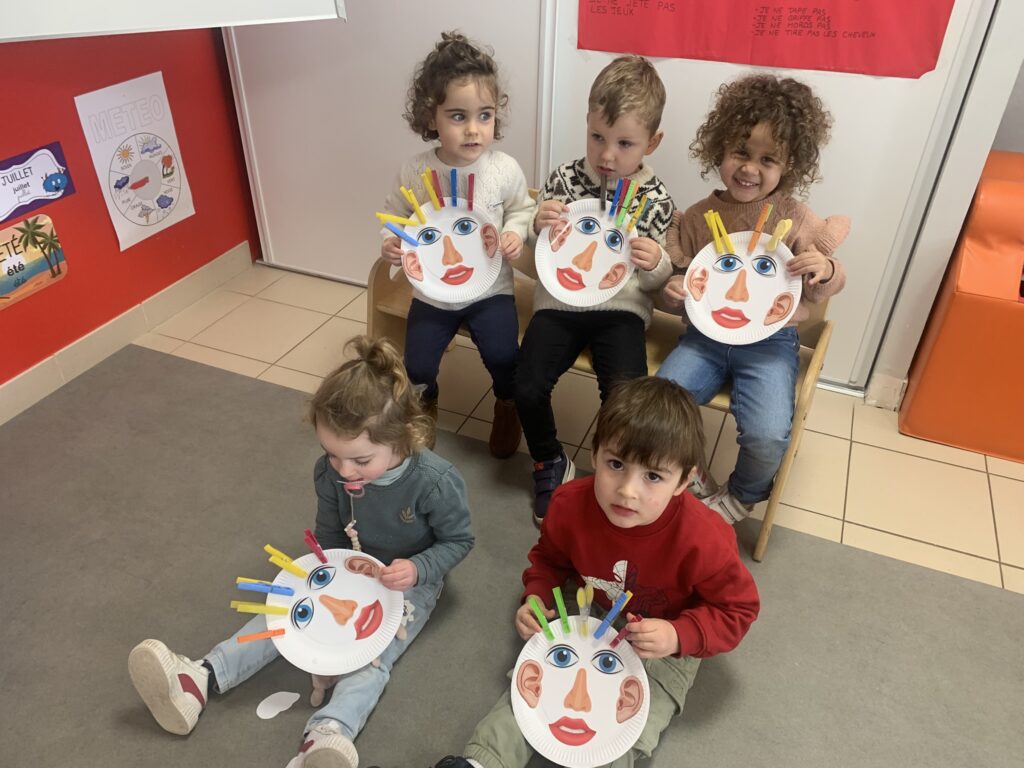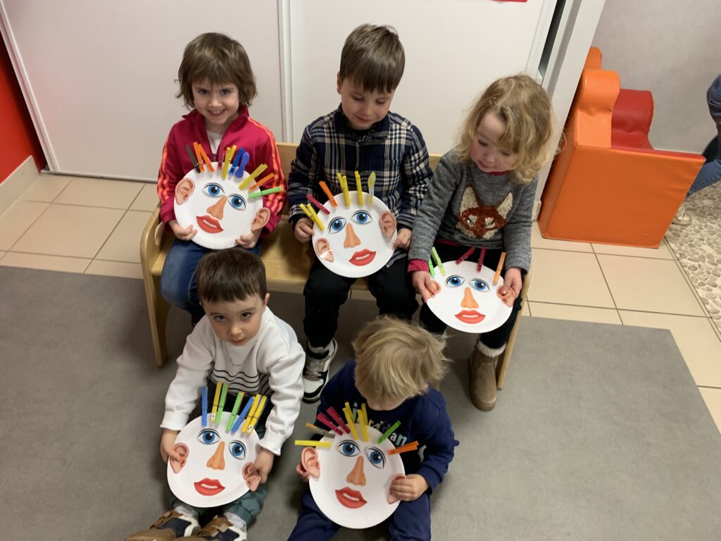 C’était l’occasion d’étudier les différents éléments du visage et de les compter : deux yeux, un nez, une bouche et deux oreilles !